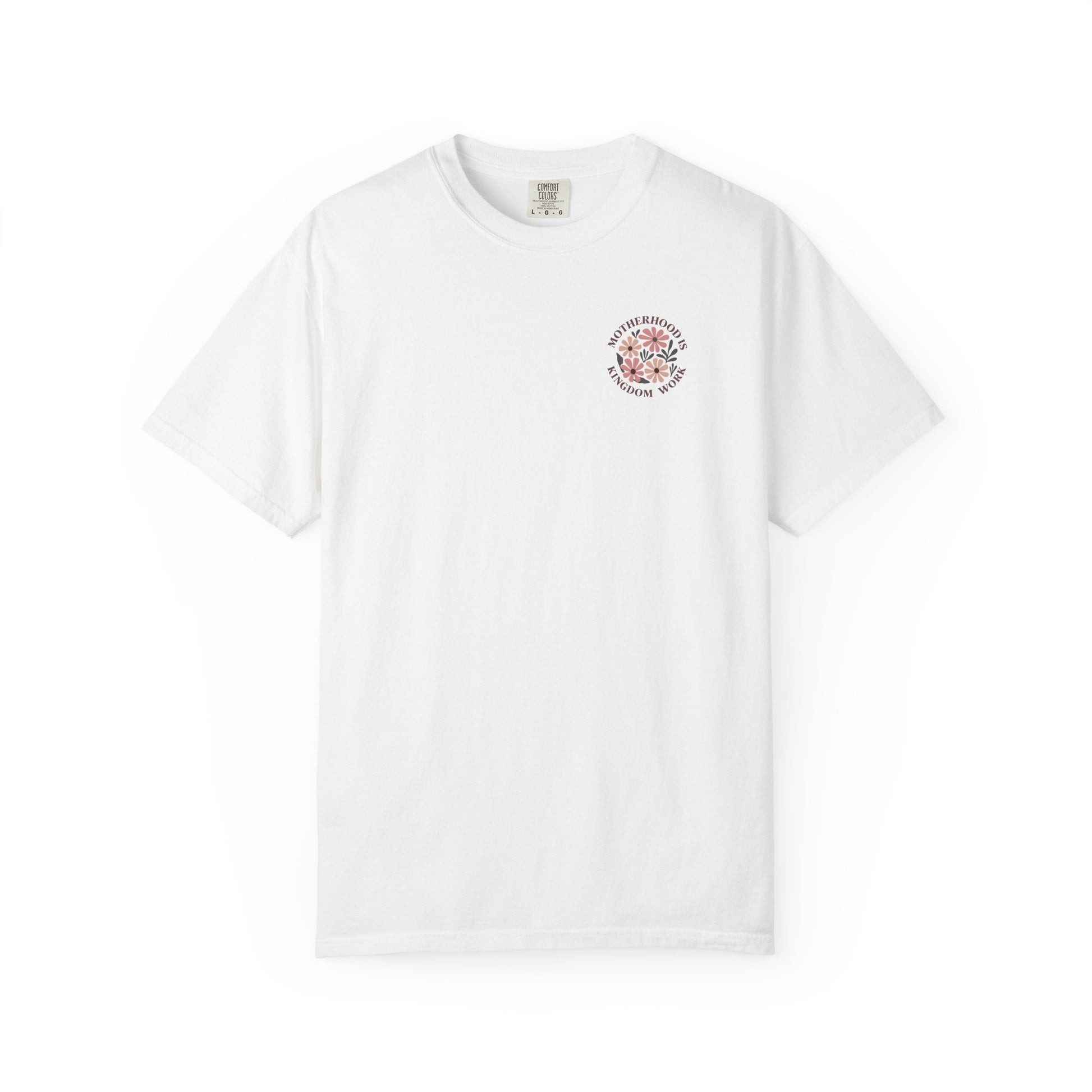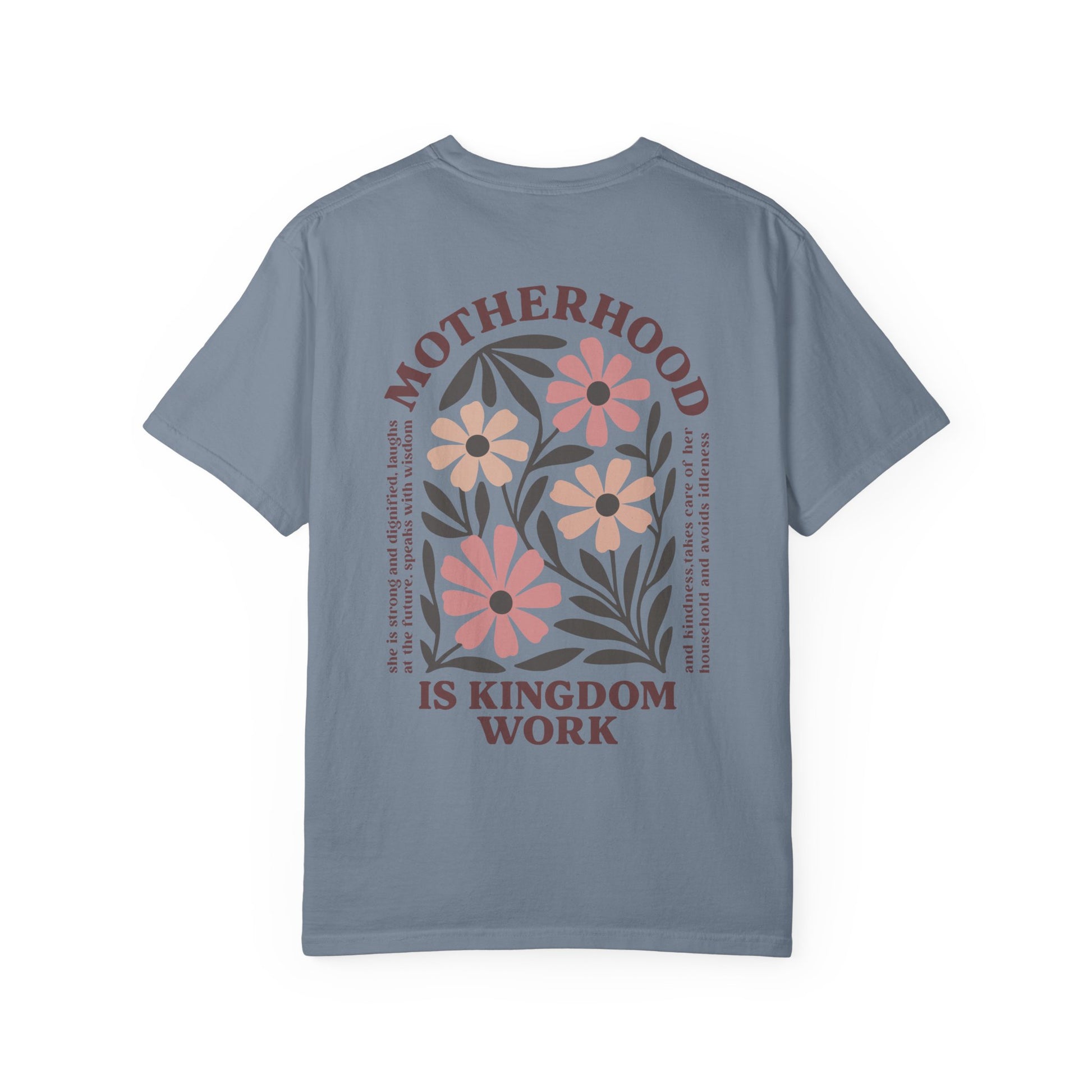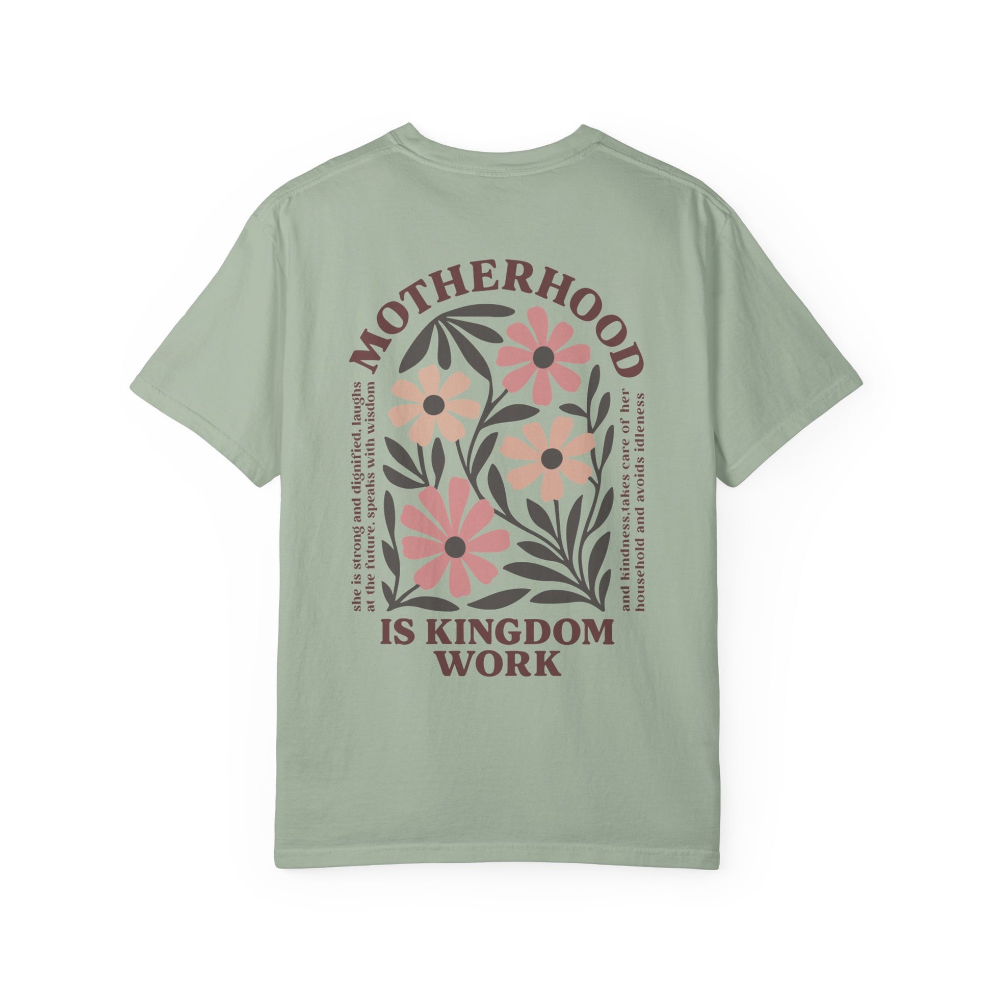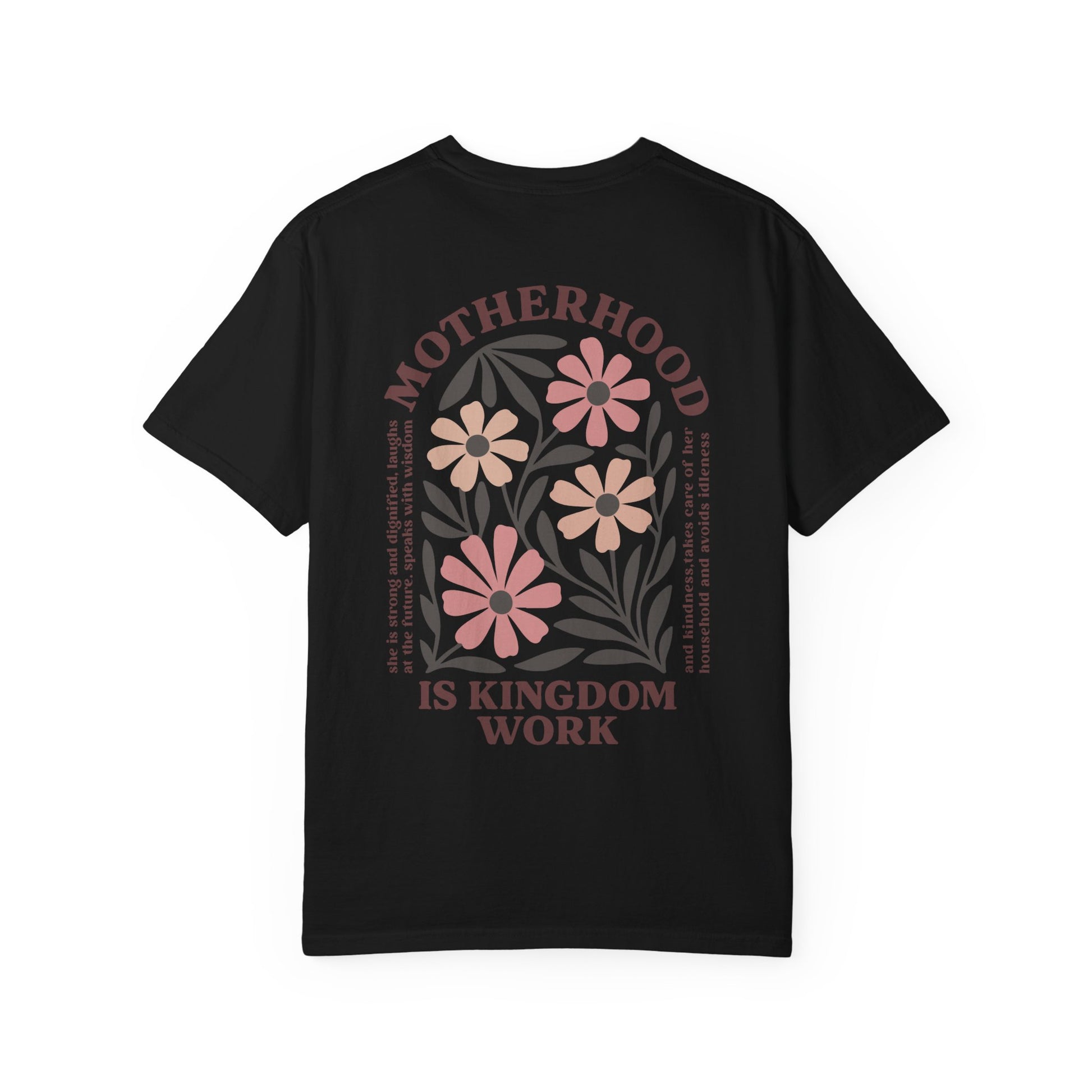Motherhood Is Kingdom Work T-Shirt — Floral Christian Mom Tee